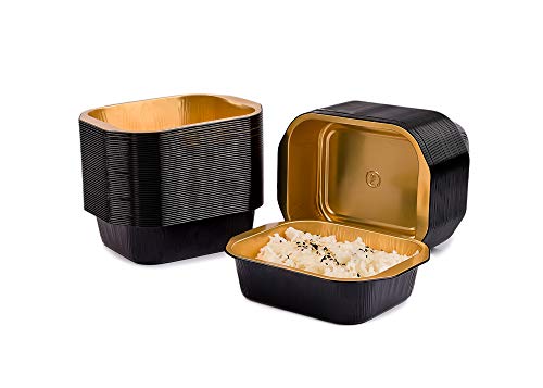 CONTITAL Behållare 1 portion i lackerad aluminium AS220497 Eclipse - Engångstankar med handtag svart/guld, Eclipse-linje, lyxig matleverans - extra styva, 50 st