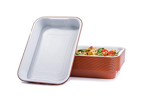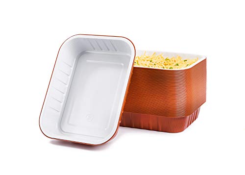 CONTITAL AS223000 | Lackerade aluminiumbehållare 10 portioner, vit/extra styv koppar | Behållare med mikrovågsugns- och förvaringslock | Engångspannor i aluminium för livsmedel | 25 stycken
