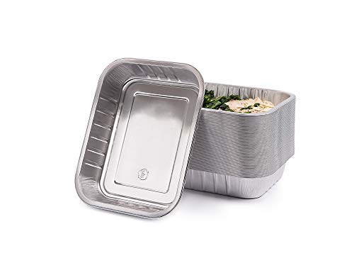 CONTITAL AS221530 Extra styva aluminiumpannor och kastruller med lock | Engångsbehållare för livsmedel, ta borta, perfekt för mikrovågsugnar - 4 portioner, professionell linje | 50 stycken