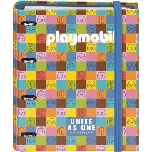 Dohe - Arkivmap med påfyllning - Mapp med 4 ringar, A4 (28x32 cm), 100 rutade ark 5x5 mm, 4 färgade skiljeväggar, ficka för extra förvaring och elastiskt stängningsband - Playmobil Unite As One