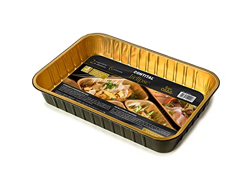 CONTITAL Eclipse AS221530 | Lackerade aluminiumbehållare med 4 extra styva portioner | Snygga engångsbehållare för livsmedel | Engångsugnspannor, perfekt för mikrovågsugn och bortskaffning | 2 stycken