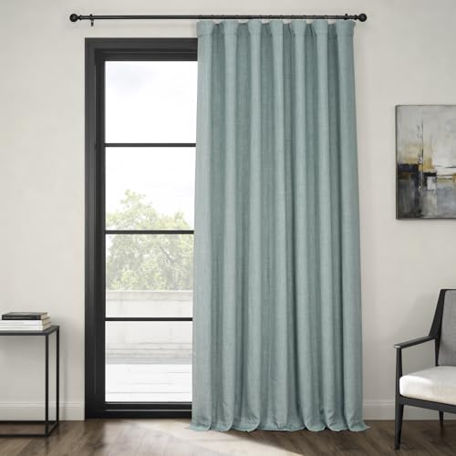 HPD Halvt pris draperier falskt linne texturerat mörkläggningsgardiner för sovrum 258 cm lång (1 panel), 100 B x 108 L extra breda gardiner för vardagsrum heminredning, havstel