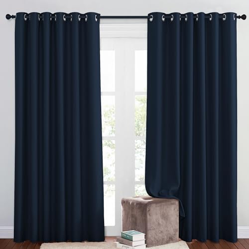Pony Dance Set med 2 ogenomskinliga gardiner, mörkläggningsgardiner, öljetter, extra breda gardiner för sovrum, 210 × 200 cm (H × B), mörkblå, set om 2