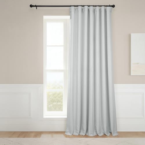 HPD HALF PRICE DRAPES Signature Plush Sammetsgardiner, extra breda, mörkläggning för sovrum (1 panel), 254 × 244 cm, hotellmörkläggningsgardiner för vardagsrum, termoisolerande gardiner, Misty White