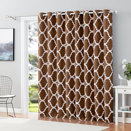 Melodieux marockanska breda gardiner mörkläggande mörkläggningsdraperi för extra brett fönster, uteplats glidande glasdörr, 1 panel (250 x 213 cm, brun)