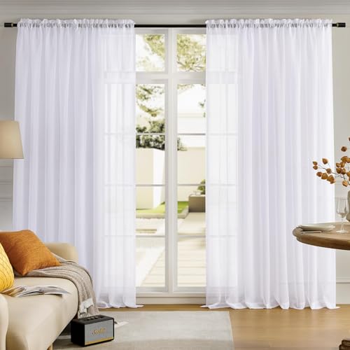 MYSTIC-HOME Sheer Curtains vita 84 tum långa, fönsterbehandlingar Rod Pocket Drapes för vardagsrum, sovrum, Semi Crinkle Voile extra breda gardiner för gård, villa, Parel, 108 x 84 tum, 1 st