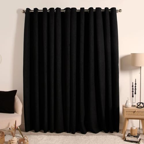 OHS Termiska mörkläggningsgardiner Boucle svart, supermjuka gardiner öljett för vardagsrum sovrum kontor moderna dekorativa extra breda gardiner för vintern, 168 x 228 cm