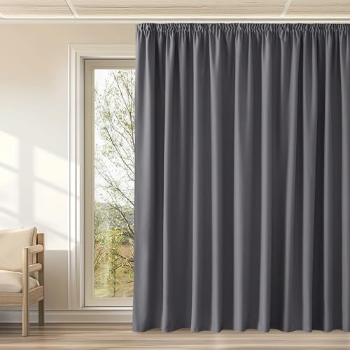 KGORGE Extra breda gardiner, termisk gardin, veckband, 300 cm breda, mörkläggningsgardiner för skena, set om 1, 240 x 300 cm (H x B), grå, termiska gardiner, ogenomskinliga, vardagsrum, gardiner