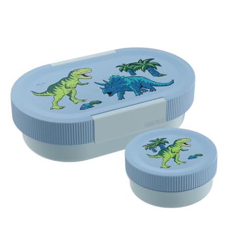 SIGG Lunchlåda set för barn – Lumo Dinosaurs – matlåda med extra burk – fjäderlätt brödlåda Dino – 2-i-1 – BPA-fri – blå – 0,8 l