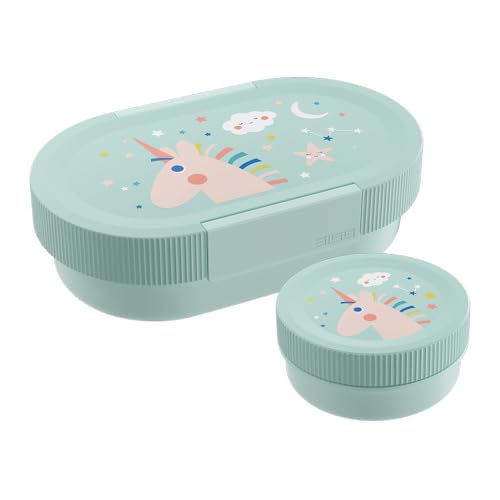 SIGG Lunchlåda set för barn – Lumo Unistar – matlåda med extra burk – fjäderlätt brödlåda enhörning – 2-i-1 – BPA-fri – ljusblå – 0,8 l