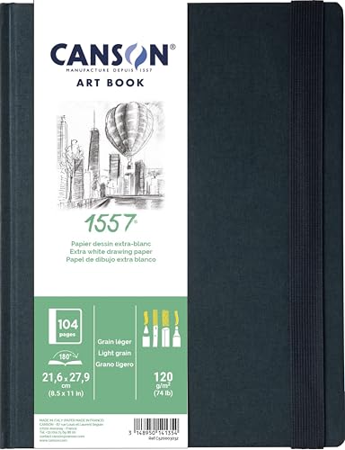 Canson Professional Book, vitt skisspapper, lättkornig, 120 gsm, sydd anteckningsbok, Inbunden, 21,6 x 27,9 cm, Extra vit, 52 ark