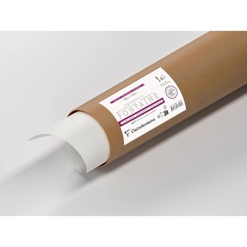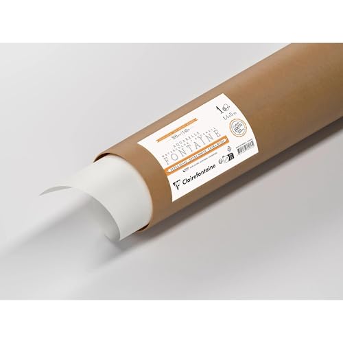 Clairefontaine 976036C Extra vit fontän rulle - extra vitt akvarellpapper 100% bomullskorn satin - professionell kvalitet 1,4 x 5 m 300 g