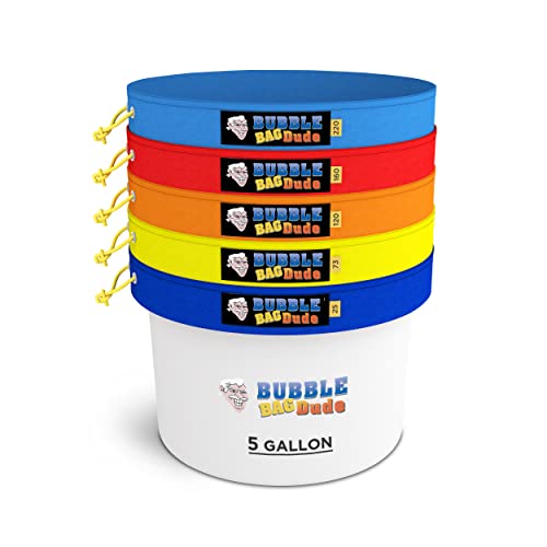 BUBBLEBAGDUDE Bubbelväskor 5 gallon 5 påsar set – örtformad isbubbla påse essens extraktor kit – växt och ört extraktion bubbelpåsar med 25 x 25 cm pressskärm och förvaringsväska (220 till 25
