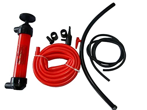 SHINE SS-24970 Multianvändning sifon pumpkit bensin dieselvätska extraktor överföring vatten vätska bränsle med 3 adaptrar, svart/röd, 27,8 x 23,6 x 3,8 cm