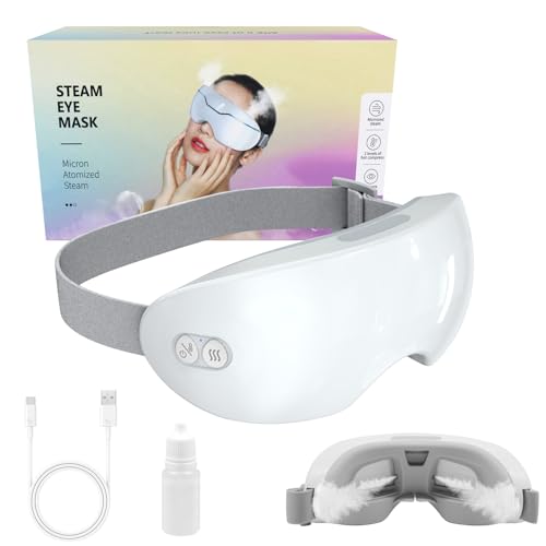 HASAIKA® Ögonmassager med värme, ånga ögonmask, mikrometrisk atomisering, minskar mörka ringar, torrhet och trötthet under ögonen (vit)