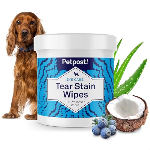 Petpost | Tear Stain Remover Wipes - 100 Presoaked Cotton Pads - Best Natural Eye Crust Treatment for White Fur - Maltese Angels Approved - Chemical and Bleach Free (100 ct.)