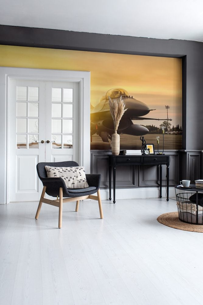 Fototapet -F16 falcon fighter jet parked on sunset background - Vardagsrum - Scandiwall - Flygplan