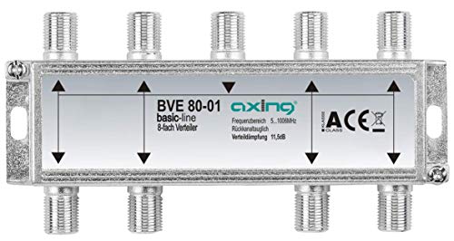 Axing BVE 80-01 8-vägs CATV DVB-T Splitter (5-1006 MHz) metallhölje F-kontakter