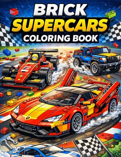 The Ultimate Brick Super Cars, Sports Cars, Exotic Cars, Luxury Cars and F1 Cars Coloring Book for Adults and Kids 4-8 | with 40+ Iconic Car Designs ... Brands (Coloring Books for Boys) - Volume 2