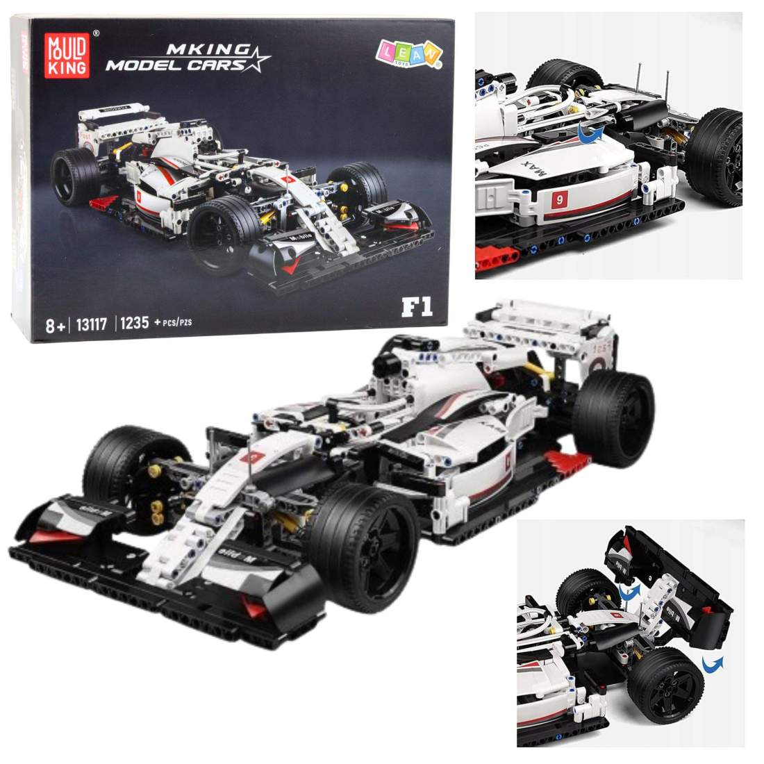 F1 Racing Car Building Blocks, röda och vita, 1235 delar