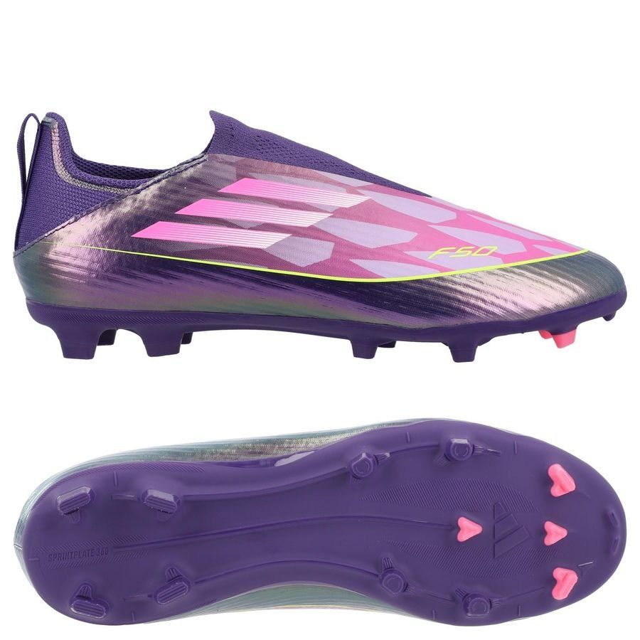 adidas F50 Elite Laceless Fg Radiant Blaze - Lila/vit/lucid Lemon Barn - Gräs (Fg), storlek 32