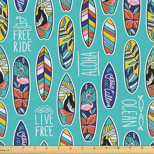 ABAKUHAUS Surfbrädetyg som metervara, Aloha Hawaii ocean, kvalitetstyg stoppning för hemtillbehör, 10 m (148 x 1 000 cm), mörkt havsskum