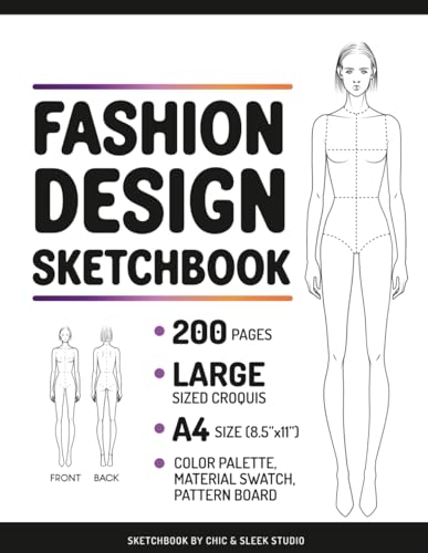 Fashion Design Sketchbook: 200-Page 8.5x11 Large Female Croquis Template with Color Palette, Fabric Swatch & Pattern Boards - Front & Back for Clothing Design Sketches