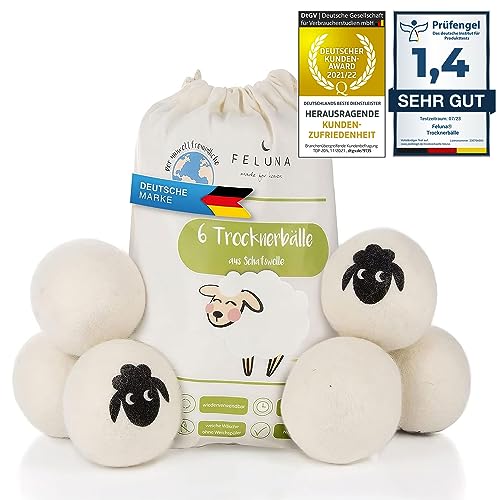 Feluna® Eco Dryer Balls for Tumble Dryer Set of 6 - Natural 100% Sheep Wool Fabric Softener - Eco Dryer Balls Laundry Balls for Tumble Dryer