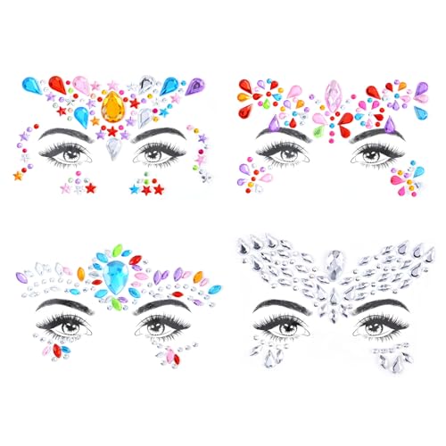 URAQT Face Gems Glitter, Face Glitter Festival Face Stickers Set för Music Festival Holiday Party, Självhäftande Strass tillfälliga tatueringar Festival Halloween dekorationer