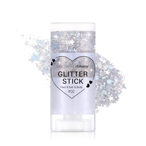 Prreal Body Glitter,Mermaid Sequins Glitter Stick Face Sparkling,Chunky Holographic Hair Glitters,Lips Nails Festival Rave Halloween Makeup, 02 Silvery