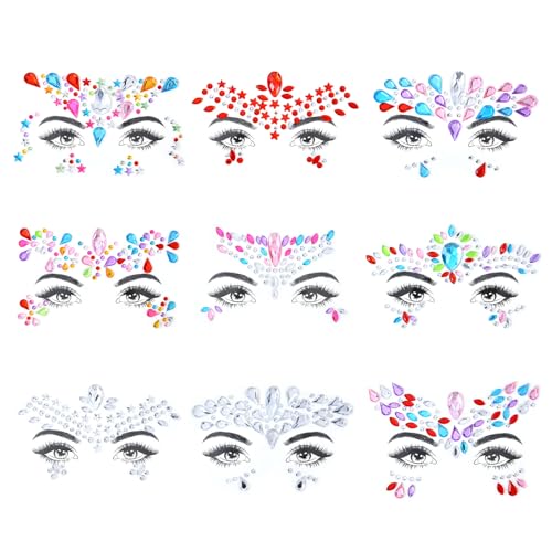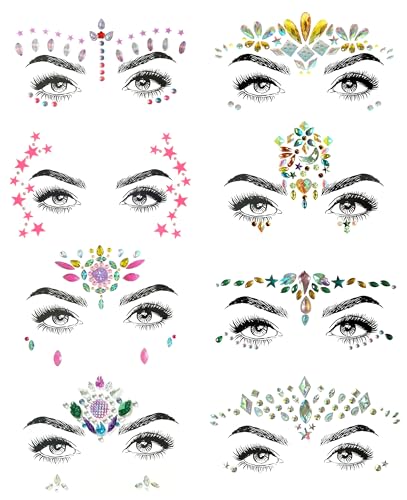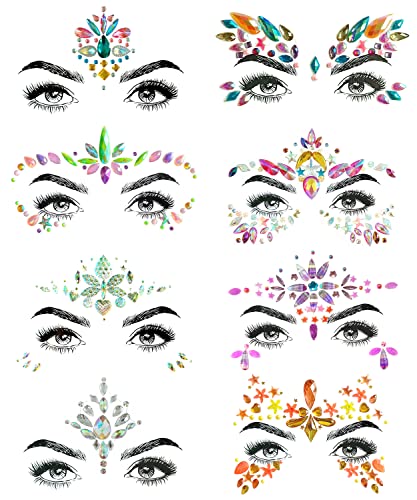 SHINEYES Music Festival Ansikte juveler, Rhinestone Rave Face Gems Glitter, Crystal Födelsedagsfest Festival Ansikteklistermärke, Ögon Ansikte Kropp Tillfälliga Tatueringar för Festival Party (8 Pcs No.05)