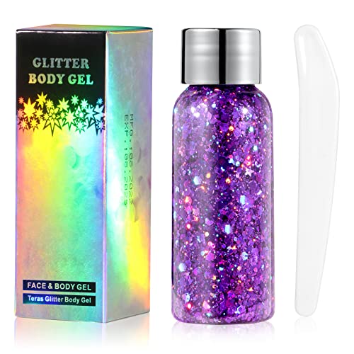 TIDEVAN Body Glitter Gel, 50 ml Holografiska Sjöjungfrupaljetter, Chunky Cosmetic Face and Body Gel, Sparkling Festival Party Lotion för Ansikte, Kropp, Ögon, Hår, Nail DIY Art