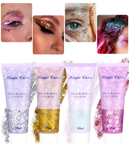 Body Glitter Gel, 4 Flaskor Face Glitter, Sparkling Face Glitter, Body Glitter Gel för Kosmetika Ansiktshår Läppar Nail Festival Party Make Up Dekoration (Vit+Silver+Guld+Rosa)