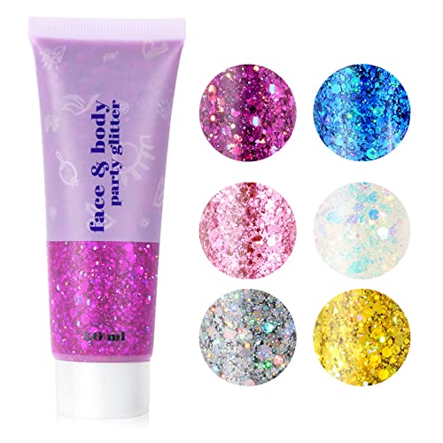 URAQT Body Glitter Gel - Holografiska Sjöjungfrupaljetter, Chunky Cosmetic Face and Body Gel, Sparkling Festival Party Lotion för Ansikte, Kropp, Ögonhår, Nagelmakeup och DIY Art