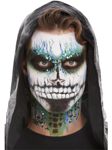 Smiffys Make-Up FX, Deluxe GID Skeleton Kit, Aqua, Transfer, Glitter, Face Paints & Applicators