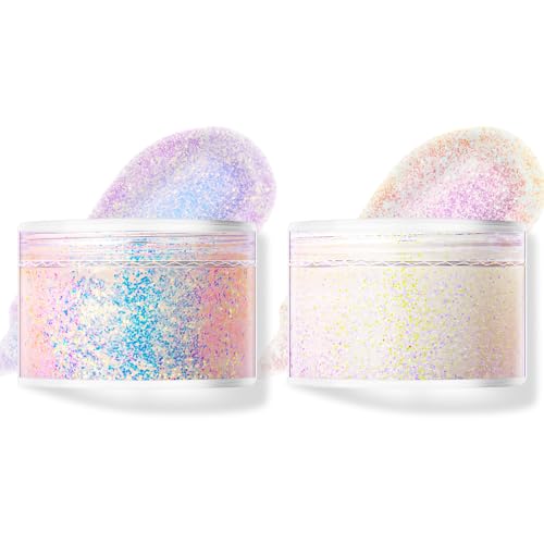 LOPHE Face Glitter Gel, 2 st Face Glitter Kosmetisk Reflekterande Chunky Kosmetisk Glitter för ansiktshår och läppar, Holografisk Mermaid Glitter Kosmetisk Glitter Face and Body Gel för Festival Party