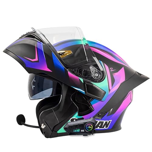 EBAYIN Motorcykel Bluetooth-hjälm Full Face Anti-Imma Visir DOT ECE-godkänd Män Kvinnor Face Up-hjälm Bluetooth Modular Helmet,C-XXL 63~64CM)