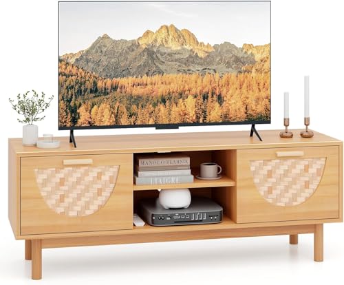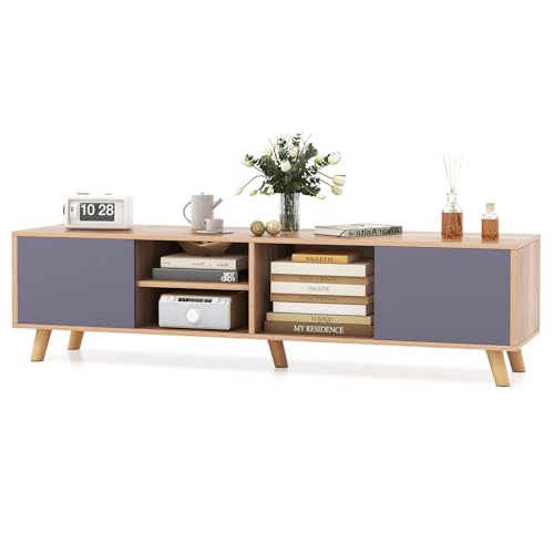 GIANTEX TV-bänk för upp till 65 tum, mediekonsol med sidoskåp, fack, förvaringshylla, underhållningscenter med kabelhål, utställningsskåp för vardagsrum