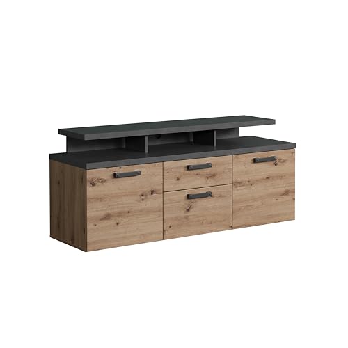 trendteam smart living – Follow – TV-skåp – ek/antracit – TV-bänk med full utdragbar låda – (B x H x D) 151 x 66 x 47 cm – TV-skåp med 3 öppna fack – praktiskt tillbehör