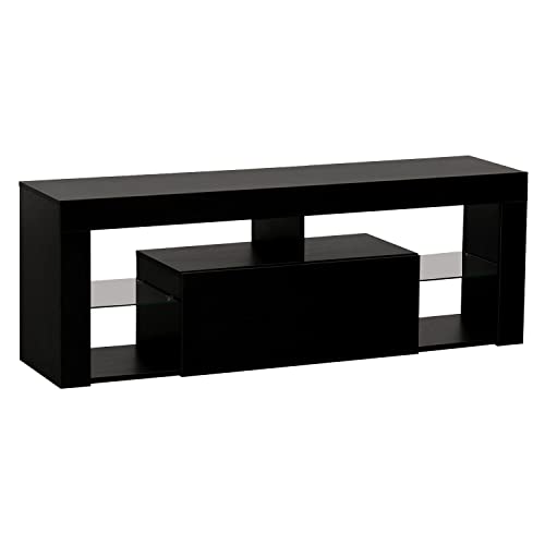 Happy Garden Daryl TV-bänk svart med LED-remsa. Bottenskåp i modern stil för TV och spelkonsol. 140 cm skåp med stängt fack och hyllor.
