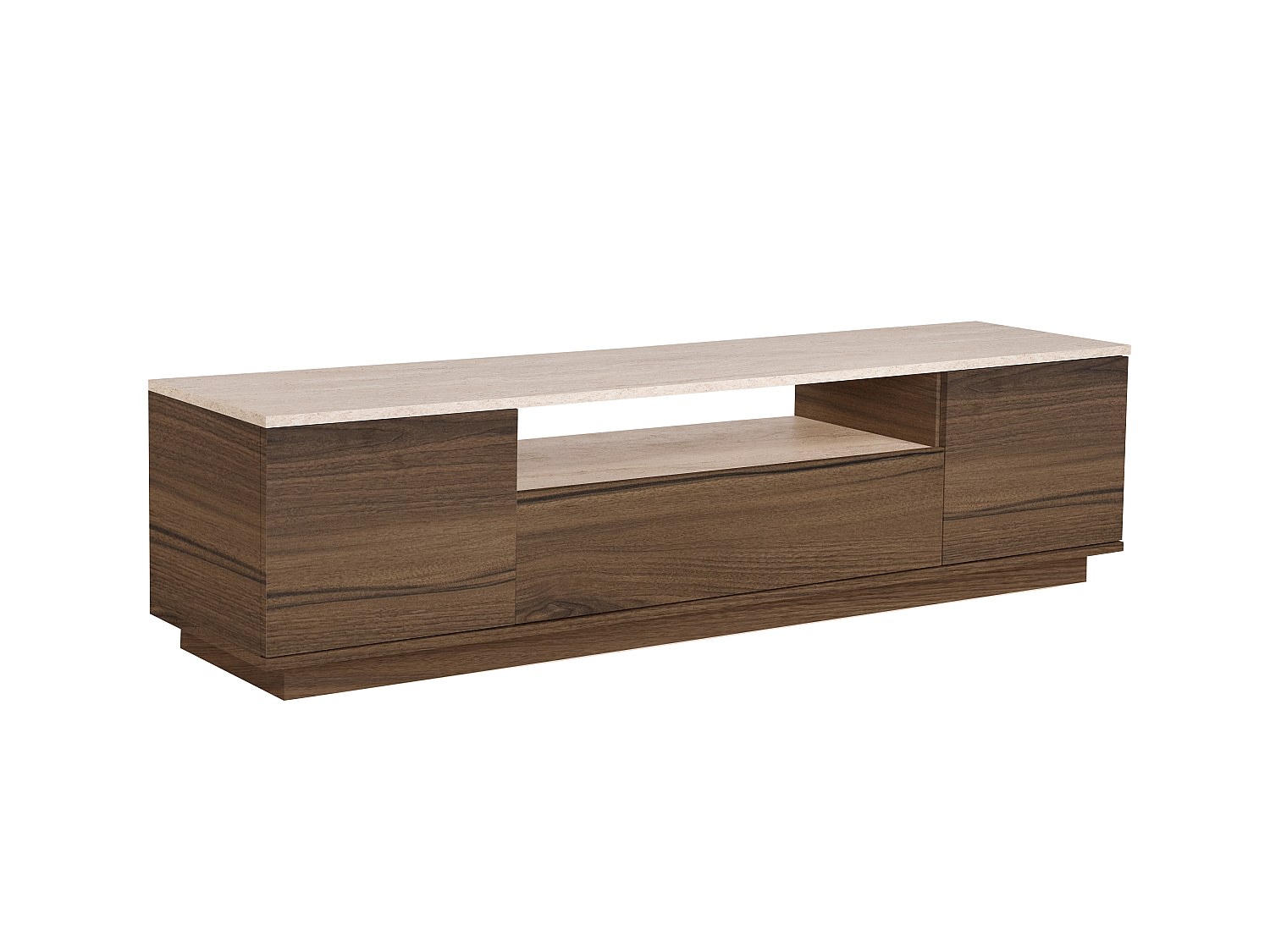 TV-bänk med 3 dörrar och 1 fack - Mörk naturlig och beige travertineffekt - LOTULA