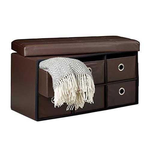 Relaxdays hopfällbar ottoman vikbar 6 avtagbara fack, 38 x 76 x 38 cm, falskt läder vikbar filt leksak förvaringsbox sits bänk puffpall, brun, 38 x 76 x 38 cm
