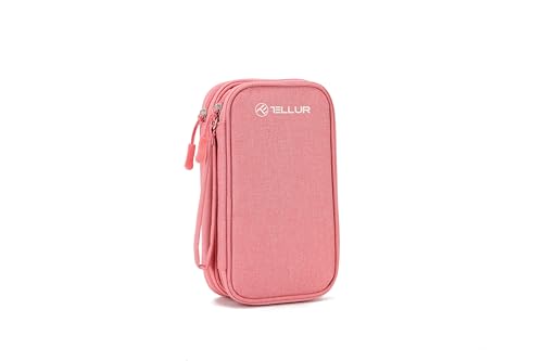TELLUR Reseorganiseringsväska för cabi, mus, hårddisk, SSD, Power Bank, kabinväska och laddare, två fack med flera fickor (rosa)