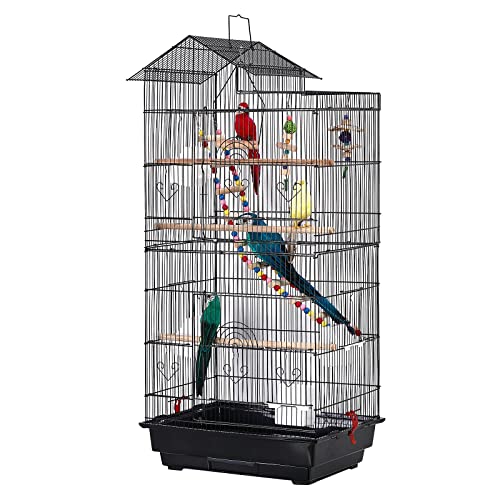 UISEBRT Fågelbur med burleksak – stort fågelhus fågelvoljärer metall fågelodlare bur fågel för finkar kanariefåglar undudulater svart (typ A, 46 x 35,5 x 99 cm)