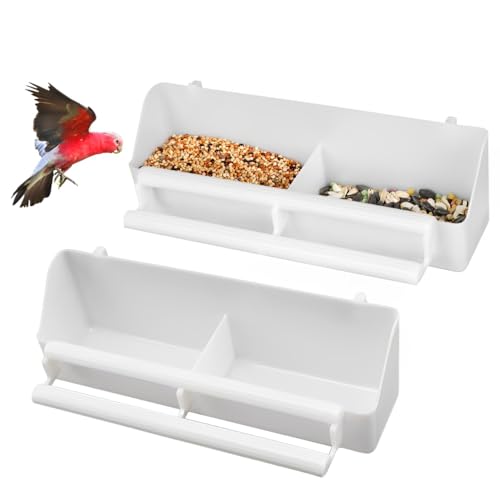 Voarge 2 st. matskål fågel fågelmatare för upphängning fågelmat dispenser vattenskål, lång vattenplats dryckeshållare matskål bur tillbehör för fåglar papegojor vit