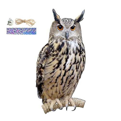 Uggla fågelskrämmare för trädgårdar, fågelavvisande enheter utomhus, uggla fågelskrämma fågelskrämma hänge, bondgårdsskydd fågelskrämmare, med klocka, rep, band, vattentät trädgårdsdekor
