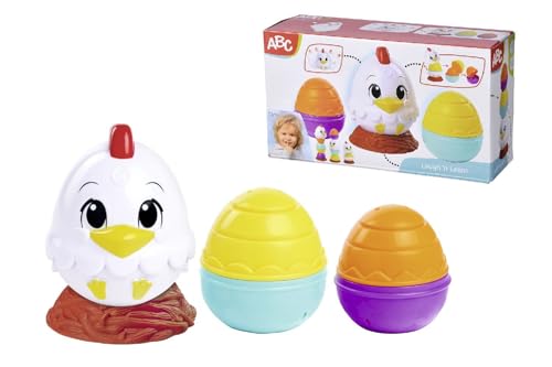 ABC 104010184 - Stapel-/Vippleksak Höna - Vippleksak från ABC i Form av Höna Inklusive Fågelbo och Staplingsbara Ägg som Kan Förvaras Inuti Hönan, Från 12 månader