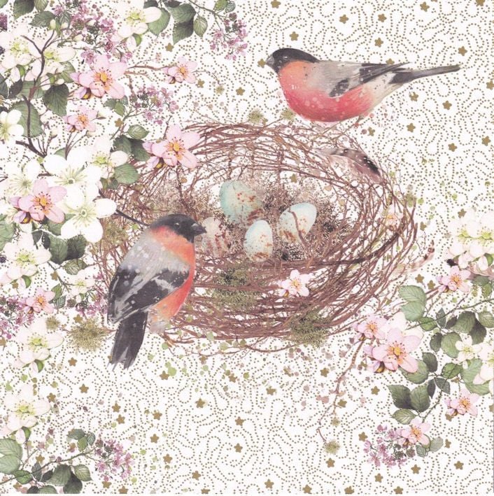 Dubbelt kort (guld) med kuvert - Fågelbo (Fraktfritt)
