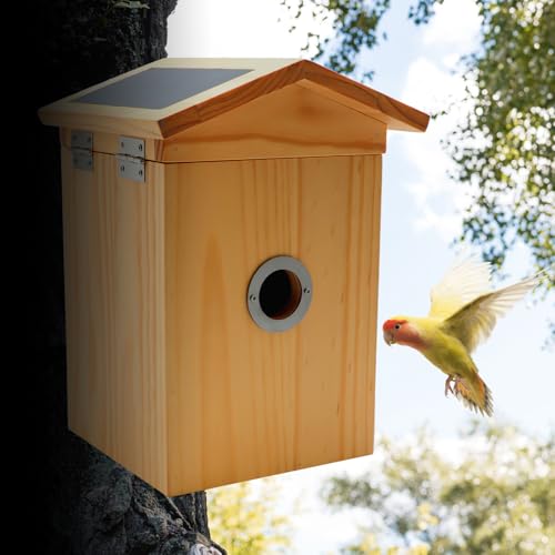 Croci Wifi fågelbo - med solpanel, batteri och kamera HD 1080p, smart app med artigenkänning, foto och video, rörelsesensorer för fåglar, trä