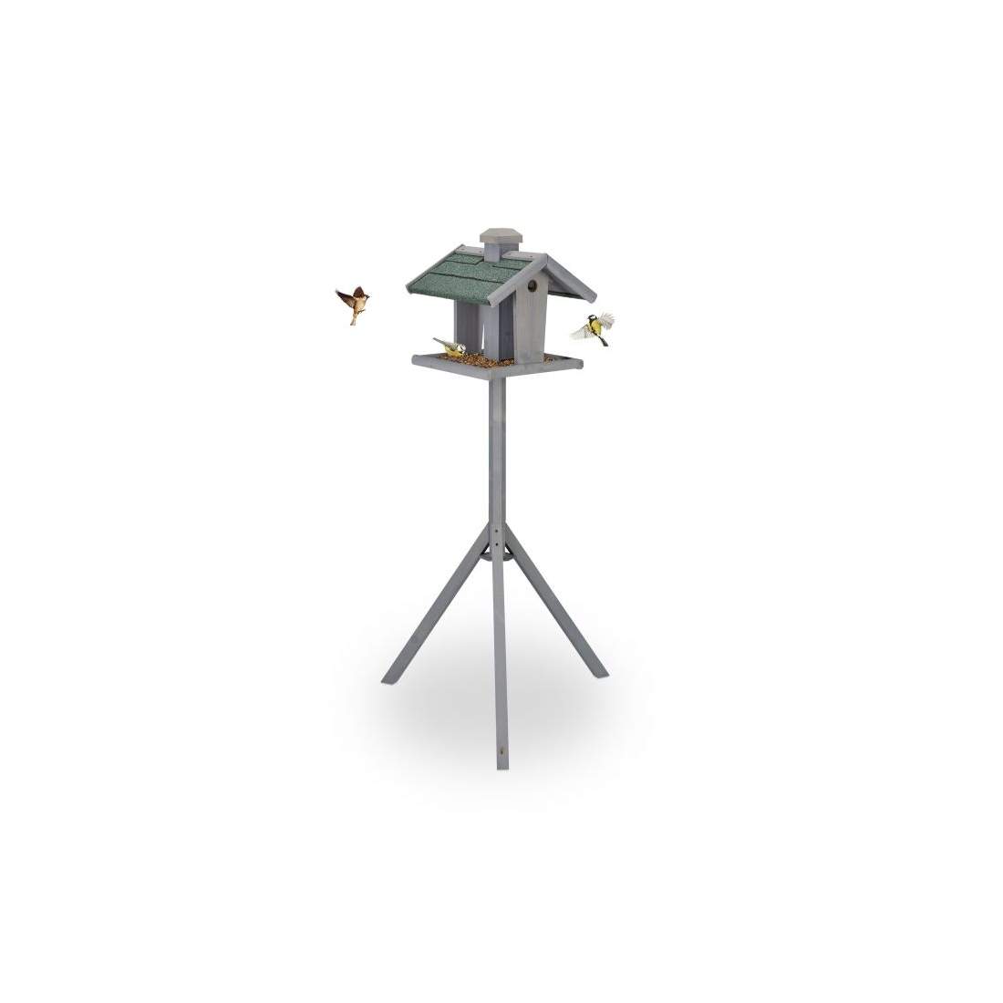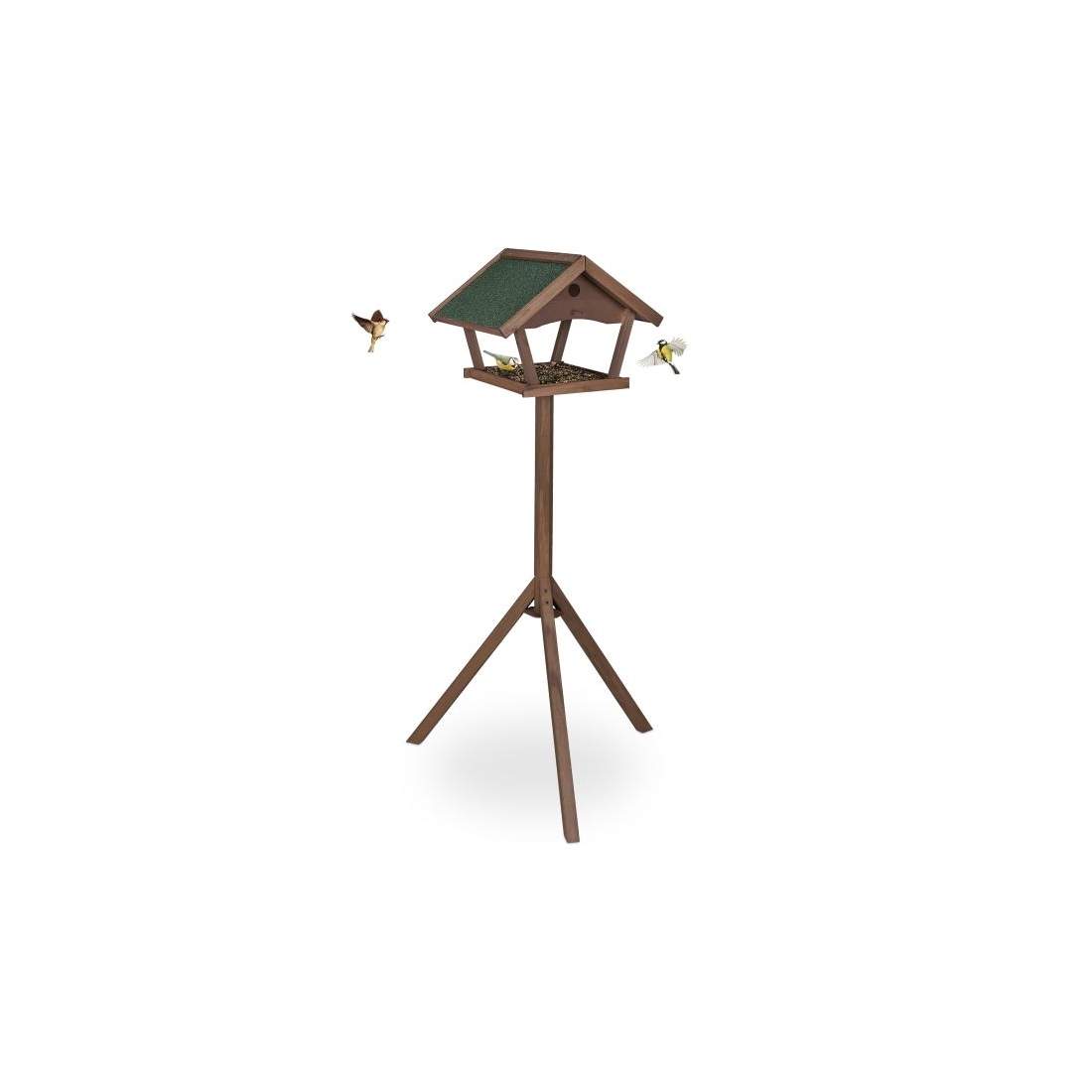 lionto Fågelhus med vädertåligt tak, stabilt fågelbord i trä med stativ & markfästen, lätt att fylla tack vare foderskyddskant, väderskydd för året runt-bruk